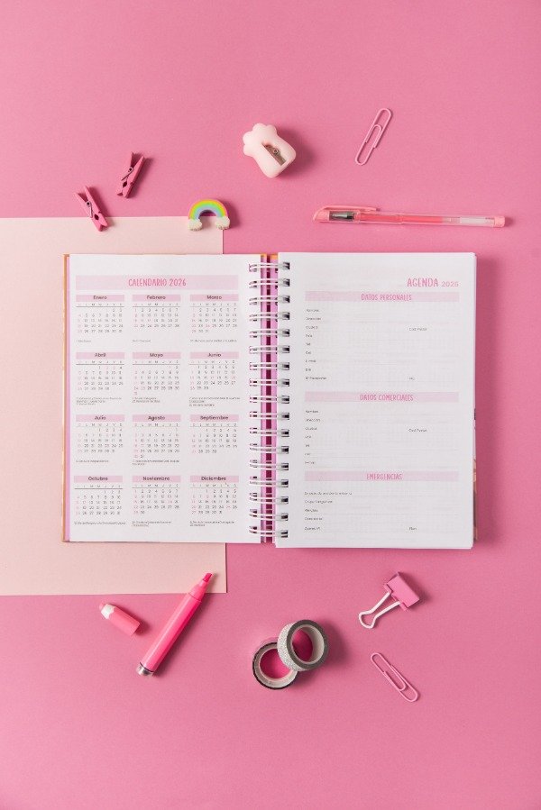 Interior hoja por día impreso en color rosa y negro